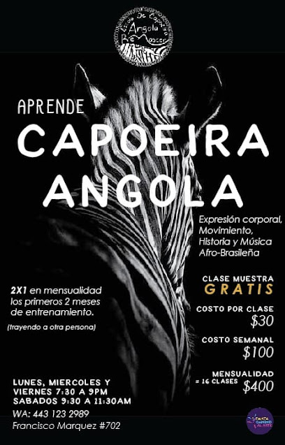 Escuela de Capoeira Angola Renascer es un grupo en donde se enseña música, ritmo, movimiento y filosofía de la Capoeira Angola, que es un arte marcial manifestada como una forma de expresión de la cultura afro-brasileña.
