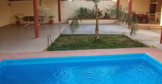Experiencia positiva: un buen lugar pequeño, tiene todo lo básico para ser una mini quinta,alberca de 4 x 4 según mis aproximaciones, mesas y sillas, asador y cocina techada, el lugar de las sillas está con lámina así que esa bochornoso, cuentan con lonas por si hace frío o llueve se encierra, el lugar de afuera está tranquilo para estacionarse y cuentan con 4 lugares para estaciónarse en la misma quinta.